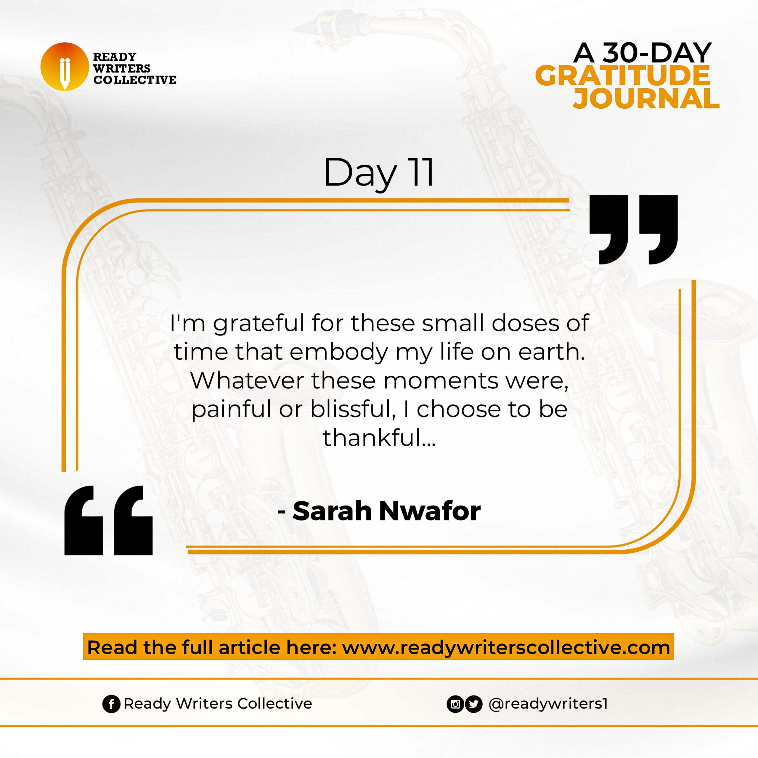 Even if I were to ponder for months non-stop, I’m afraid I would be unable to recall everything I should be thankful for. You see, I may pen down what my human memory deems worthy of remembering, but what about the things that occurred beyond my consciousness? This is why I have chosen to settle for the seemingly insignificant. I, Nwafor Sarah Isioma, am grateful for “the moments.” Nothing could encompass everything that should appear on my gratitude list better than the word “moment.”